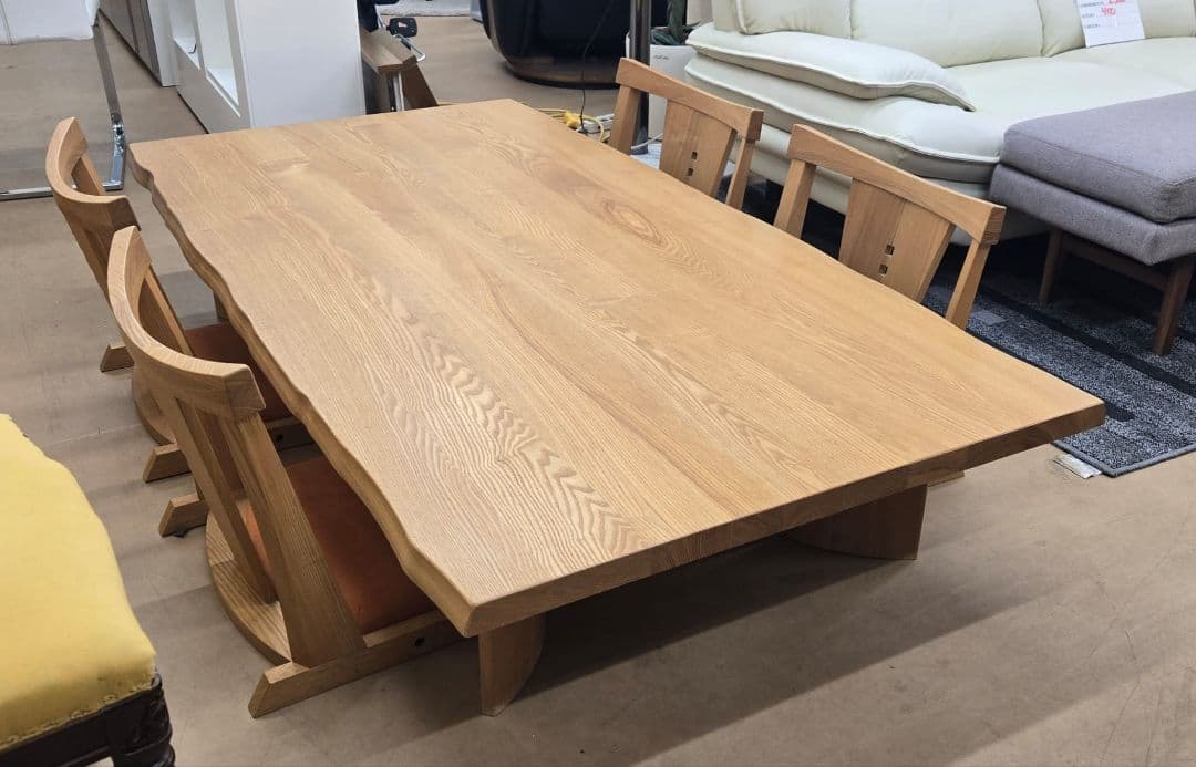 一点モノ\r天然杉の一枚板\r\rローテーブル、ちゃぶ台、スツール・無垢のダイニングテーブルとしてもいかがでしょうか^^\r\r■サイズ \r断面直径:横88.0cm 縦26.5cm〜30.0cm\r厚み : 4.5cm \r高さ:16.5cm \r\r乾燥状態 : 5年自然乾燥材\r\r両断面ルータの水平加工、サンダーがけと面取り処理済。\rワトコオイル ナチュラル2度塗り\r\rテーブルの脚は、同じ杉の木を使用してあるので天板との相性がピッタリです。\r\r☆水中乾燥☆\r水中乾燥とは、木材を一定期間水中に沈ませて乾燥させる日本伝統の乾燥方法です。\r最も乾燥に時間と手間がかかる方法ですが、割れや反りを防ぎ、木の本来の良さを保つベストな乾燥方法です。\r\r水中に木材を沈めることで、木材の中の不純物を洗い流すことができ、木材の表面も美しく仕上がります。\r\r※ハンドメイドで天然の木を使用していますので、色味やひび割れ、歪み等の経年変化など予めご了承ください。\r\r※寸法は測る場所によって違いがあります。おおよその目安にしてください。| カテゴリー: | 家具・インテリア>>>机・テーブル>>>座卓・ちゃぶ台 |